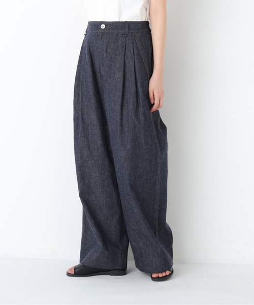 大人リラクシーに穿きたいデニムワイドパンツ【デザインのポイント】 ダブルタックの綿麻デニムワイドパンツです。ポケットとベルトループに繊細なデザインを施してポイントにしています。裾の見返しは太めにとって裾までシルエットがしっかり出る様にしています。後ウェストゴム入り。 【素材のポイント】 麻混の6ozライトオンスデニムを使用しています。ライトオンスデニムに麻の節感がプラスされたナチュラルさのあるデニムです。 【おすすめコーディネート】 すっきりシルエットのワイドパンツはリラックスした履き心地でトップスを選びません。【お買いものをよりお楽しみいただく為に】■商品のお気に入り登録再入荷・残り1点・セールの通知を受け取ることができます。■ブランドのお気に入り登録新商品・再入荷/タイムセールやクーポンなどのブランドの情報を受け取ることができます。-------------------------------------------【human woman】1998年よりスタートした”フレンチトラッド”をベースにした大人な女性のためのカジュアルブランド。素材や縫製にもこだわってつくられた上質な日常着は、長い時間大切にお使いいただけるようにお作りしています。約20年の歴史の中で、「数年着続けても安心感があるお洋服」と多くの方に高いクオリティを認められてきました。ベーシックなアイテムにさりげなく加えたトレンド感で、「私らしいカジュアルスタイル」を見つけてみませんか。「カジュアルが好き」「少しだけトレンドも取り入れたい」「大切に着たい」「私らしくいたい」そんな思いをかなえるお洋服をhuman womanでは提案しています。-------------------------------------------