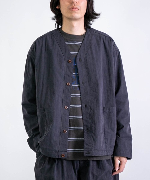 【 26Spring & Summer 】 艶と軽さを纏う、リラックスカーディガン ・艶のあるピーチ加工のコットンナイロン素材 ・ざっくり羽織れる、ゆとりのあるリラックスフィット ・ミリタリー由来の、浅いVネックと大振りフロントポケット ・シルエット調整できる、裾ドローコード仕様 <素材・デザイン> 綿70%・ナイロン30%のコットンナイロンウェザーピーチバイオ生地を使用した、軽やかな着心地のリラックスカーディガン。 ピーチ加工によるなめらかな肌触りと、ナイロン混ならではのほんのりとした艶感が特徴で、カジュアルな中にも上品さを感じさせる素材感に仕上げています。 肩幅と身幅にゆとりを持たせたリラックスフィットで、Tシャツやシャツの上からざっくりと羽織れる設計。 開きの浅いVネックや大振りのフロントポケットなど、ミリタリーウエア由来のディテールをさりげなく取り入れ、シンプルながらも表情のあるデザインにまとめています。 裾にはドローコードを施し、絞ることでシルエットに変化をつけた着こなしも可能。 同素材のボトムスと合わせたセットアップはもちろん、単体でも幅広いコーディネートに取り入れやすい、軽やかで汎用性の高い一着です。 …………………… 厚さ:やや薄手伸縮性:なし ポケット:あり 洗濯:可能 …………………… 綿70%,ナイロン30% サイズ表記は2(Mサイズ)、3(Lサイズ) となります ◇着用レビュー H176 / 着用サイズ2(M) 肌寒い時期に適した、丁度良い素材感のカーディガン。 軽くて気軽に着やすいデザインでコーディネートにも取り入れやすくて◎ 程よい丈感とゆとりのあるシルエットで、レイヤードもしやすいです。 セットアップで着るとより雰囲気のあるスタイリングが楽しめるアイテムです。 [SPELLBOUND / スペルバウンド] 厳しい品質管理のもと、児島・さぬき市の国産工場で縫製しています。児島の洗い工場で加工を施した製品は肌馴染みの良い生地感に仕上がり、はき込むほどに独特の風合いを生み、長く味わっていただける商品となります。「デニム」・「ワーク」・「ミリタリー」といったカジュアル服の普遍的なキーワードをイメージソースに、ベーシックでありながら程良く時代と寄り添ったデイリーウェアーを提案します。 お問い合わせ品番:46-0310X / 46-310X