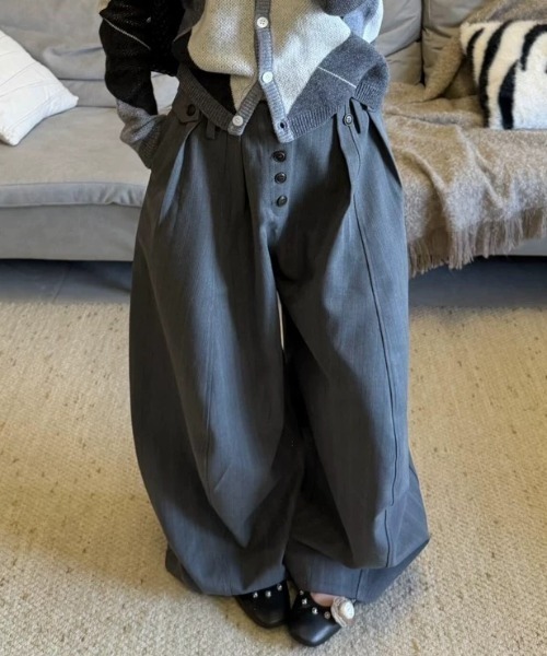 \ 立体シルエットで魅せるモード主役 / 裾に向かって膨らむバルーンフォルム。 深めタックが生む圧倒的立体感、 一枚でコーデが完成する存在感をも。 ジェンダーレスに穿ける今っぽワイドアイテムです。 ■detail ・立体タック入りバルーンシルエット。 ・ピンストライプ風グレー生地。 ・ハイウエストデザイン。 ・フロントボタンフライ仕様。 ・ウエストサイドタブ付き。 ・裾ワイドのボリュームレッグ。 ・落ち感のあるスラックス素材を使用。 ・ユニセックスアイテムで幅広く活躍します。 ■fabric ……………………………… 透け感:なし 厚さ:普通 伸縮性:ややあり ポケット:あり フロント:ボタンフライ ……………………………… ■coordinate ・ショート丈トップスで脚長バランス。 ・コンパクトニットで上品モード。 ・テーラードジャケットでセットアップ風。 ・厚底ローファーでボリューム強調。 ・タイトトップス合わせで立体感際立つ。 【CELENA(セレナ) ZOZOTOWN お買い物ガイド】 ▼商品をお気に入り登録▼ 完売商品の再入荷やラスト1点の通知、セール開始時にお知らせ! ▼"CELENA (セレナ) "をお気に入りブランドに登録▼ 新商品や再入荷など、ブランド最新情報をいち早くお知らせ! 是非、ご活用いただきお買い物をお楽しみください◎ 【ATTENTION】 ※掲載している画像はサンプルです。実際の商品とは、色合い・仕様・加工・サイズ・素材などが若干異なる場合がございます。 ※撮影環境やご利用のモニター設定により、実際の色味と異なって見えることがあります。 ※製品の特性上、濡れた状態や汗をかいたままでの長時間放置、または摩擦により、色移りする可能性がございます。ご着用の際は十分ご注意ください。 ※お洗濯の際は、商品の洗濯表示タグをご確認ください。 ※直射日光を避け、風通しがよく湿気の少ない場所で保管してください。 ※加工の特性により、お届け時ににおいが感じられる場合がございますが、ご使用いただくうちに軽減されます。