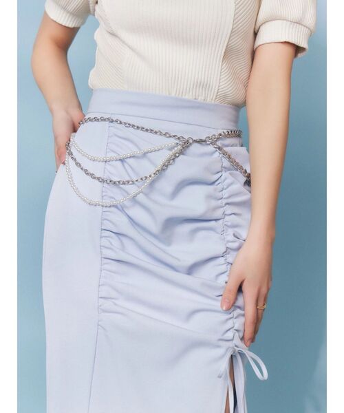 ウエスト周りを華やかにしてくれるフェイクパールを使用したチェーンベルトです。ベルトとしてはもちろん、ベルトループにかけて、アクセサリー感覚でご使用いただけます。シンプルなスタイリングのアクセントに役立つアイテムです。