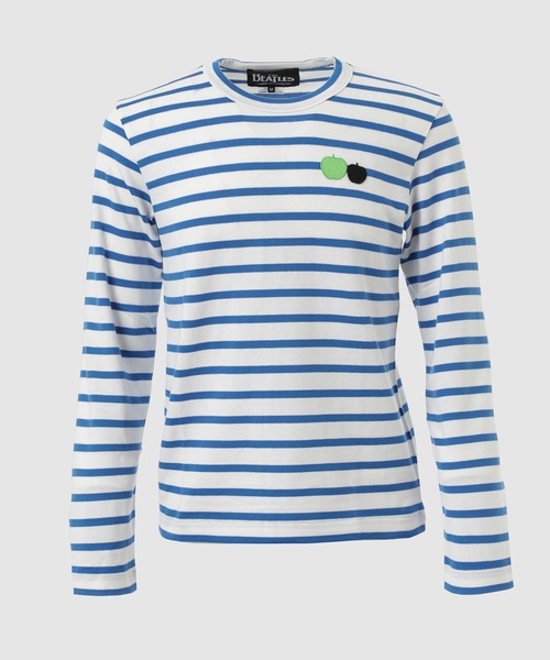 色鮮やかな組む合わせが目を引くボダーTシャツはコム デ ギャルソンとビートルズによるコラボレーションによる一枚。コム デ ギャルソンオリジナルによる柔らかなコットン天竺を使用したロングスリーブTシャツに胸元にはビートルズを象徴するシンボルであるアップル(林檎)マークのワンポイントをプラス。二つの大きさ・カラーが異なるシンプルなワンポイントが色鮮やかなボーダーに映えるシンプルでありながらインパクトのある一枚です。(ユニセックスのためMサイズより通常メンズSサイズぐらいのイメージとなります) This vibrantly colored striped T-shirt is a collaboration between Comme des Garçons and The Beatles. Crafted from soft cotton jersey, this long-sleeved T-shirt features The Beatles' iconic apple logo on the chest. The two simple accents, each in a different size and color, stand out against the vibrant stripes, creating a simple yet impactful piece.