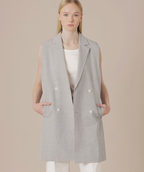【着用推奨シーズン:春・秋】 <素材説明> イタリアのNALYA(ナリヤ)社の素材を使用しています。レーヨンクレープ糸を使用することで、清涼感のある風合いに仕上げています。また、リネンの表情を残しつつ、ストレッチ性も兼ね備えたイタリアならではの生地です。 <デザインポイント> 着丈の長いダブル前のジレです。パンツにカットソーとのスタイリングにプラスする事でコーディネートのグレードが上がります。裏地が無くサラッとした素材感で肌離れも良く、春から夏に向かう季節に活躍するアイテムです。