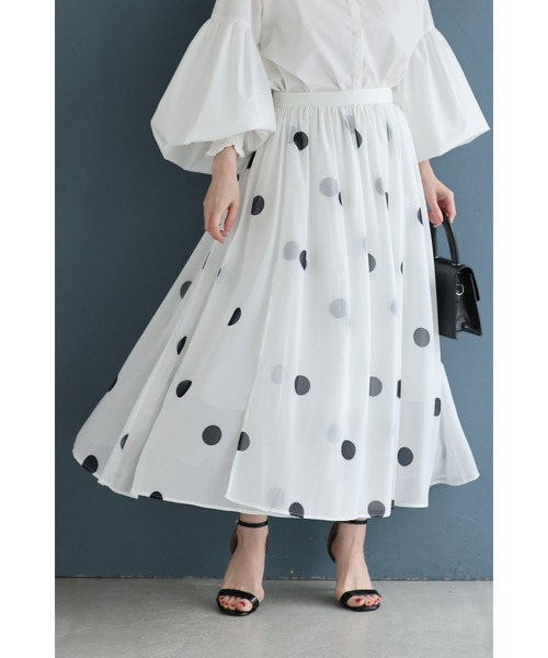 【CAWAII】 「ドット柄舞うシアーミディアムスカート」 ■クラシカルなドット柄に柔らかなシフォン素材で、綺麗めなコーデにもカジュアルなコーデにマッチします。 ふんわりと揺れる柔らかなシフォン素材が女性らしさを引き立て、ブラウス合わせの綺麗めコーデから、 Tシャツやニットを合わせたカジュアルスタイルまで幅広くマッチします。甘さの中に大人の品を感じさせる一枚です。 ■ウエストゴムなので動きやすく、ストレスフリーな着心地。 ウエストは総ゴム仕様で、締め付け感のないストレスフリーな着心地。 動くたびに優しく広がるシルエットが体型をさりげなくカバーしつつ、楽におしゃれを楽しめます。 長時間のお出かけやお食事シーンにも安心です。 ■裏地付きで安心。 透け感を楽しみながらも、裏地付きで安心して着用できるデザイン。 足元にほんのりと抜け感を演出し、軽やかで上品な印象に仕上げます。 【ショップのお気に入り登録】 新作アイテムやセール通知、お得な情報を受取ることができます。 ぜひご登録ください。 【商品のお気に入り登録】 気になるアイテムは《お気に入り登録》がオススメ! 入荷情報やクーポン情報、再入荷通知やラスト1点の通知などお得な情報を受け取ることができます。 ≪CAWAII(カワイイ)/ FRENCH PAVE(フレンチパヴェ)≫ 「他には無いカワイイが見つかる」「非日常を日常に」「自分の人生は自分で描こう」 をコンセプトに展開している芦屋発のレディースブランド。 流行にとらわれ過ぎない独自の世界観で、他にはないような個性的なアイテムを数多く取り揃えております。 10代、20代、30代、40代、50代の幅広い年齢層にご利用いただいております。 ※お使いのディスプレイにより色味が異なって見える場合がございます。