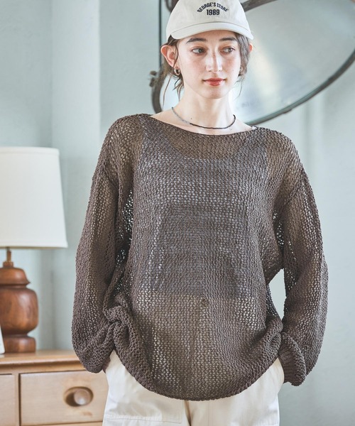 インナー次第で表情が変わるメッシュニット ■DESIGN ・首元をすっきりと見せるボートネック ・ゆったりとした身幅とお尻にかかる着丈で、大人のリラックス感を演出 定番色に加え、表情豊かなミックスカラーも展開したアソート構成です。 ■FABRIC ・細いロープのような糸を使用し、クラフト感のある特徴的な質感 ・オフやブラウンの定番色に加え、表情豊かなミックスカラーも展開 ■STYLING ・編み目の粗いメッシュニットなので、ロゴTや無地のタンクトップなど、インナー次第でがらっと印象を変えられる ・デニムやイージーパンツなど、カジュアルでラフなボトムと合わせるとリラックス感のあるスタイリングに ※サンプルにて撮影をしておりますので、実際の商品とは仕様や加工・サイズ等が若干異なる場合がございます。 ※屋外の光や照明の当たり具合で、実物と色味が異なって見える場合がございます。詳細画像の色味をご確認ください。 なお、商品の色や質感を出来るだけ忠実に再現するよう心掛けておりますが、パソコンなどの環境により、実物と若干異なる場合がございます。 ※写真を許可無くコピー・転用することは固くお断りします。