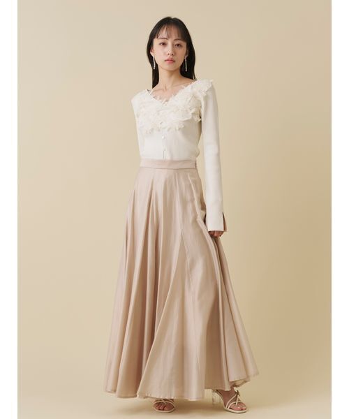 【華やかな印象のオーガンジーボリュームスカート】 【Design/Styling】 贅沢な分量感が目を惹く、華やかなオーガンジースカート。 マチの高低差で単調にならず、動きのあるシルエットに。 裾にボリュームを持たせつつ、腰回りはすっきり仕上げました。 【Fabric】 軽やかで艶感のあるテンセルオーガンジー素材を使用。 分量がありながらも重たく見えないのがポイントです。 ホワイト、ピンクベージュ、イエローの3色展開です。 【おすすめ骨格タイプ】 ■骨格ストレート ■骨格ナチュラル ※照明の関係により、実際よりも色味が違って見える場合があります。 またパソコン・スマートフォンなどの環境により、若干製品と画像のカラーが異なる場合もございます。予めご了承ください。 商品の色味は、商品単品画像をご参照下さい。 ※商品画像はサンプルのため、色味やサイズ等の仕様に変更がある場合がございますので、予めご了承ください。