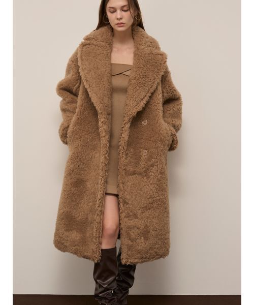 【ふんわりボリューミーな主役級ボアロングコートをさらっと纏って】 【Design/Styling】 たっぷりボリューミーでリッチな起毛感が魅力のフェイクファーを使用したラグジュアリーなボアロングコートです。しっかりと厚みがあり、ふわふわとした肌触りが柔らかなボア素材を使用。さらっと羽織るだけで主役級な1着です。軽量で着心地が良いのも嬉しいポイント。長めの着丈で、膝下までしっかりカバーし、防寒力も抜群です。ビッグカラーは女性らしさと華やかさをプラスし、小顔効果も期待できます。身頃はやや太幅で、ドロップショルダーでゆったりと仕上げたサイジングで、抜け感のある着こなしを叶えます。ボディラインの華奢見え効果も抜群。タイトなニットワンピや、柔らかなシフォンワンピにさらっと羽織るだけで、ドラマティックな着こなしを叶えてくれます。裏地付きで着やすいデザインです。ポケットが左右に2つ付いています。フロントのボタンで着脱いただけます。 【Fabric】 アイボリー、キャメルの2色展開。 透け感;なし 裏地;あり 伸縮性;なし 光沢感;なし 生地の厚さ;厚手 【おすすめ骨格タイプ】 ■骨格ウェーブ ■骨格ナチュラル ※照明の関係により、実際よりも色味が違って見える場合があります。 またパソコン・スマートフォンなどの環境により、若干製品と画像のカラーが異なる場合もございます。予めご了承ください。 商品の色味は、商品単品画像をご参照下さい。 ※商品画像はサンプルのため、色味やサイズ等の仕様に変更がある場合がございますので、予めご了承ください。