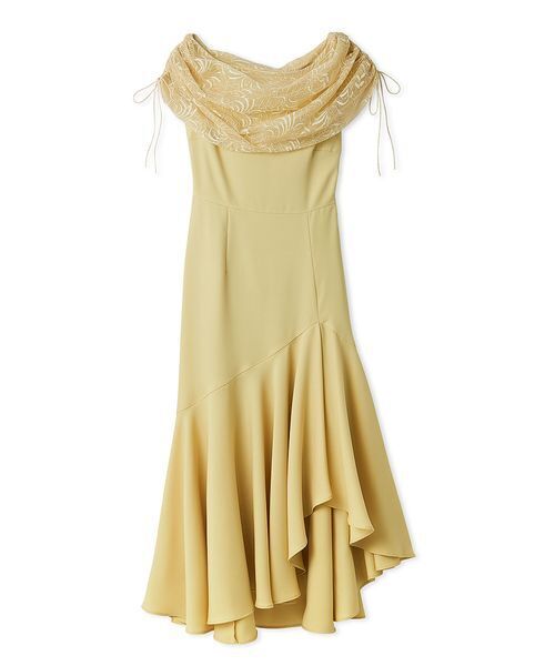 【トレンド感のあるレースドレープケープとアシンメトリなマーメードシルエットが華やかなドレス】 【Design/Styling】 ドレープを効かせて包み込むレースケープが顔まわりを華やかに彩る、マーメイドドレスが届きました。ベースは、落ち感のあるなめらかな素材で仕立てたノースリワンピース。高めのウエスト位置にアシンメトリで切り替えを入れモード感をプラス。裾もアシンメトリな切り替えでマーメードシルエットを作り、優雅でドラマティックな仕上がりに。襟ぐりのボリューミーなドレープケープは、サイドにドロスとリボンを配置してアクセントに。リボンでレースケープのサイズ感の微調節が可能です。被りでご着用いただけます。 【Fabric】 グレー、ブラック、イエローの3色展開です。ナイロンポリエステル素材の柔らかな落ち感のある素材を使用。裏地付き。 透け感:なし 裏地:あり 伸縮性:なし 光沢感:なし 生地の厚さ:普通 【おすすめ骨格タイプ】 ■骨格ストレート ■骨格ウェーブ ※照明の関係により、実際よりも色味が違って見える場合があります。 またパソコン・スマートフォンなどの環境により、若干製品と画像のカラーが異なる場合もございます。予めご了承ください。 商品の色味は、商品単品画像をご参照下さい。 ※商品画像はサンプルのため、色味やサイズ等の仕様に変更がある場合がございますので、予めご了承ください。