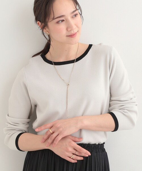 【デザイン】 毛羽立ちにくく、すっきりした表情でシルエットがきれいに見えるニット。 首元がすっきり見えするネックライン、上品な配色にこだわりました。 程よくゆとりがあり身体のラインを拾いにくく、体型をすっきりカバーしながらきれいに、見せるシルエットもポイント。 長すぎず短すぎない着丈でボトムを選ばずきれいに着ていただけます。 【スタイリング】 同素材のカーディガンとアンサンブルとして着用が可能です。 オンオフ問わず着られるベーシックなデザインできちんと感があり、 通勤やおでかけ時におすすめ。 テーパードパンツ合わせならきちんと見えのオフィスカジュアルに。 ワイドパンツやフレアスカートと合わせればフェミニンな印象に。 薄手のニットなので、ジャケットのインナー使いにもおすすめです。 ※アンサンブル可能品番:C62-35302 【素材】 毛羽が少なく、表面の美しさにこだわった糸で編み立てています。 ※照明の関係により、実際よりも色味が違って見える場合があります。また、パソコン・スマートフォンなどの環境により、若干製品と画像のカラーが異なる場合もございます。 モデル情報:身長163cm B81 W59 H88 着用サイズ:02(M) 店舗へのお問い合わせ商品番号:C62-15310 ●製品寸法: 01(S):着丈54cm B91cm 袖丈55cm 肩幅32cm 02(M):着丈56cm B95cm 袖丈56cm 肩幅34cm 03(L):着丈58cm B97cm 袖丈57cm 肩幅36cm 04(LL):着丈60cm B99cm 袖丈58cm 肩幅38cm 備考: