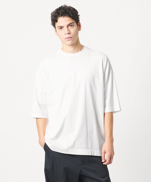 ゆったりシルエットが心地よい上質カットソー ■デザイン ゆったりとしたシルエットにドロップショルダーと長めの5分袖を組み合わせたデザイン。 詰まった襟元で程よいきちんと感がありつつ、リラックスした着心地が魅力の一枚です。 ■素材 しなやかで肌触りの良いスビンコットン天竺を使用。 上品な艶と自然なドレープが特徴で、素肌に心地よく季節を問わず着用いただけます。 ============================ 裏地:なし 透け感:WHITEはややあり 伸縮:ややあり 光沢感:なし ケア方法:手洗い可 ============================ <LOEFF(ロエフ)> “年齢を重ねても大切にしたい日常着” 全ての服には歴史と物語があり、同様に様々な素材/縫製/加工/仕上げにおいて先人達のたゆまぬ努力があり、今現在の私たちの身に纏うものがつくられてゆきます。ルーツを大切にし、如何に創意工夫をするか。 精悍 / 品 / 質 / 真摯 をポリシーにものづくりを続けていきます。 【注意事項】 ※商品に「取り扱い上の注意書き」、「洗濯表示」がございます場合は、使用前に必ずご確認ください。 ※商品画像は、光の当たり具合やパソコンなどの閲覧環境により、実際の色味と異なって見える場合がございます。あらかじめご了承ください。 ※商品の色味の目安は、商品単体の画像をご参照ください。 ※モデル着用画像の商品はサンプルです。実際の商品と色味、仕様、加工、サイズ、素材等が若干異なる場合がございます。 店舗へお問い合わせの際は、全国のUNITED ARROWS各店舗まで下記の品名/品番をお申し付けください。 品名:LFM SVN CTN SSL 品番:88826000002