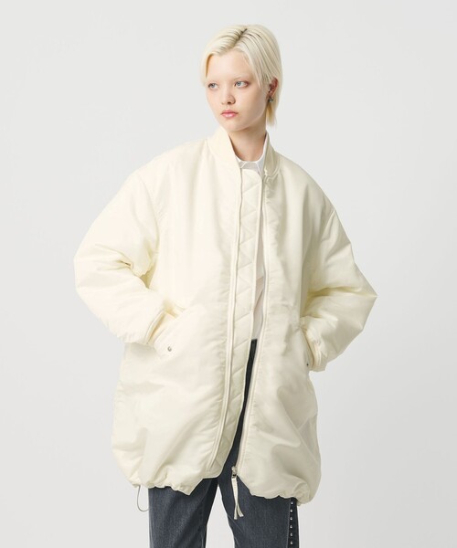 ヒップが隠れる長めのレングスで仕立てたMA-1型ブルゾンです。しっかりとした肉感のナイロンに、中わた入りのあたたかさも兼ね備えたアイテム。張りのある生地が立体感を生み出し、ストンと落ちるボクシーなフォルムが存在感を引き立てます。裾のドローストリングで絞りを加えれば、お好みに合わせてシルエットのアレンジも可能です。ショーツやミニスカートを添えたり、リラクシーなワイドボトムとも好相性。日常のワードローブに寄り添いながら、クラス感あふれるアーバンスタイルに導くおすすめの一着。 ============================ 裏地:あり 透け感:なし 伸縮:なし 光沢感:ややあり ケア方法:ドライクリーニング ============================ 【注意事項】 ※商品に「取り扱い上の注意書き」、「洗濯表示」がございます場合は、使用前に必ずご確認ください。 ※商品画像は、光の当たり具合やパソコンなどの閲覧環境により、実際の色味と異なって見える場合がございます。あらかじめご了承ください。 ※商品の色味の目安は、商品単体の画像をご参照ください。 店舗へお問い合わせの際は、下記の品名/品番をお申し付けください。 品名:HW NY PADET MA-1 品番:16251000013