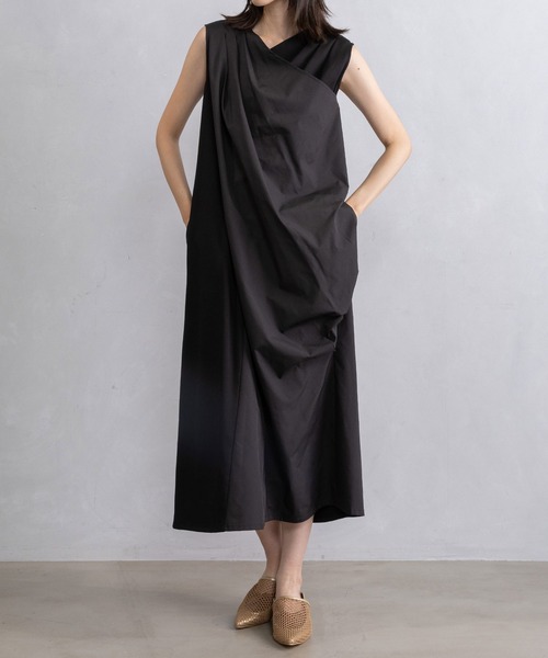 ■2026 SPRING SUMMER collection■ 異素材をコンビネーションしたレイヤードワンピース フロントクロスがデザインポイント アシンメトリーに入ったドレープが自然な陰影をつくり、シンプルなのに存在感のあるデザインワンピース。 すとんと落ちるラインで、ロングシーズン使える扱いやすさも魅力です。 身体のラインを拾わないゆったりシルエットで、着心地はラクなのにスタイル良く見える“大人の着映えワンピース”です。 【DESIGN】 ■デコルテラインを奇麗に見せるVネック ■スムースにタックを寄せ右前のタフタにドレープを寄せ、フロントでクロスしたデザイン ■バックは左身頃を斜めにタフタで切替えて、微配色のステッチいり ■両サイドポケット有り 【MATERIAL】 (表地) 高級な光沢感のある目面が奇麗なポンチを使用 ・程良い肉感で透けずらい ・表面が平らでハリがあるため、シワがつきにくい ・伸縮性も高く、着心地が良いのが特徴です (別地) 程良いハリ感があり、上品な光沢感のポリエステルタフタを使用 ・軽量で丈夫で落ち感のあるドレープ性をもつ素材 -------------------------- 裏地:なし 光沢感:微光沢 透け感:なし 伸縮性:あり 生地の厚さ:中肉厚 ケア方法:ホームクリーニング(手洗い) -------------------------- ◆お取り扱いについては商品についております品質表示にてご確認下さい。 *光のあたり具合いやパソコンなどのモニター環境によって実際の色味と異なって見える場合がございます。予めご了承ください。 *撮影時はサンプルの為、若干のデザイン変更等ある場合がございます。予めご了承ください。 <INFORMATION> ◆商品のお気に入り登録お気に入り登録していただいた商品は、完売商品の再入荷通知やラスト1点の通知、またクーポン発行やタイムセールの通知もお届け!ぜひご登録してください。 ◆ショップ・ブランドのお気に入り登録新商品や再入荷、ショップ・ブランドのお得な情報をいち早お届け!ぜひご登録してください。