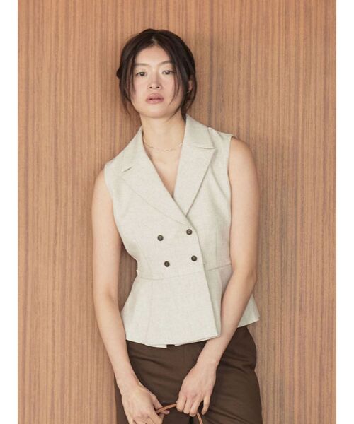 スタイリング力抜群のベストはペプラムデザインでモダンに華やいで ■デザインコメント きれいめなスタイリングが楽しめるベスト。ペプラムデザインを採用し、女性らしい雰囲気に仕上げました。 ペプラムディティールはウエストをすっきり見せる効果も期待できます。 アームホールの開き具合も程よく、密着感を気にせず快適に着ていただけます。 スカート、パンツどちらにも合わせられる丈感に設定し、少しだけラフに着こなしたい時はデニムなどカジュアルなボトムのスタイリングがおすすめです。 ■スタイリングポイント ・テーパードの形のパンツやタイトスカートと合わせるとバランスよく着用いただけます ・スカートでオフィスカジュアルに、OFFの日はデニムパンツでカジュアルなお出かけシーンにもぴったり ・きちんと感を更に出したいときはテーラードジャケットがおすすめ 【修正コメント】 カマ底位置若干上げてその分肩先位置を上げます。前下がりとボタン位置1センチ上がります。 --------------------------------------------------- 透け感:なし 裏地:あり 生地の厚さ:普通 洗濯:- 伸縮性:なし ポケット:なし ジップ:なし --------------------------------------------------- 【 ZOZOTOWNでお買い物を楽しむ便利機能 】 ♡商品のお気に入り登録 完売カラーの再入荷時、ラスト1点の時、セール開始時にお知らせします。 予約アイテムが入荷して通常販売になった時もお知らせしてくれます! その他お得な通知も盛りだくさんです。 ♡ブランドのお気に入り登録 新商品や再入荷、セール情報など、いち早くブランドのお得な情報を受け取ることができます。 ぜひご活用ください!