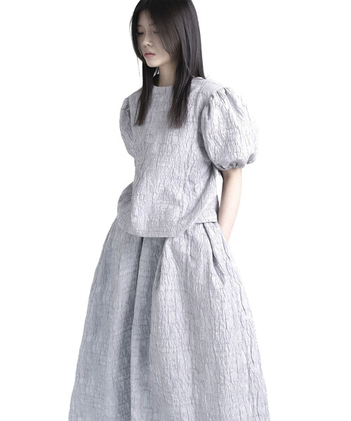 <デザイン> - フェミニンなシルエットを演出するタックスカート - コンシールファスナー / 後ろウエストゴム仕様 - サイドポケット×2 - ミモレ丈 - 裏地なし <素材> - シワ加工を施したジャカード生地 - 上品なツヤ感 ※着用、お取り扱いの際は商品についておりますアテンションタグ、洗濯ネームを必ずご確認ください。 ※モデル撮影画像は、光の当たり具合やパソコンなどの閲覧環境によって、実際の色味と異なって見える場合がございます。商品の色味は商品単体で撮影した詳細画像をご参照ください。 メーカー品番:bloom tuck skirt eunoia | ユノイア 2014年に設立された韓国のブランド。‘’eunoia‘’はギリシャ語で「美しい考え」という意味。韓国の彫刻、建築、陶器、瓦などによく見られる、なだらかな曲線からインスピレーションを受け、黒と白を基調とした繊細なスタイルを表現。豊かなシルエットとクラシックかつユニークな、美しいスタイルを展開しています。