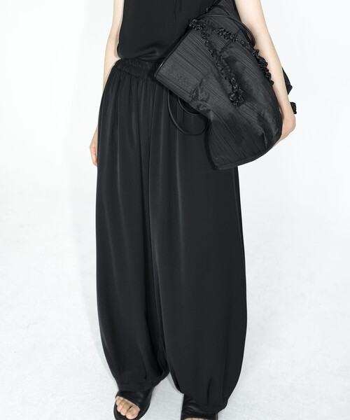 <デザイン> - 優美な曲線を描くワイドパンツ - ゴムウエストのイージー仕様 - サイドポケット×2 - 裏地あり <素材> - なめらかな肌触り - 軽やかな着用感 ※着用、お取り扱いの際は商品についておりますアテンションタグ、洗濯ネームを必ずご確認ください。 ※モデル撮影画像は、光の当たり具合やパソコンなどの閲覧環境によって、実際の色味と異なって見える場合がございます。商品の色味は商品単体で撮影した詳細画像をご参照ください。 メーカー品番:silket pants eunoia | ユノイア 2014年に設立された韓国のブランド。‘’eunoia‘’はギリシャ語で「美しい考え」という意味。韓国の彫刻、建築、陶器、瓦などによく見られる、なだらかな曲線からインスピレーションを受け、黒と白を基調とした繊細なスタイルを表現。豊かなシルエットとクラシックかつユニークな、美しいスタイルを展開しています。
