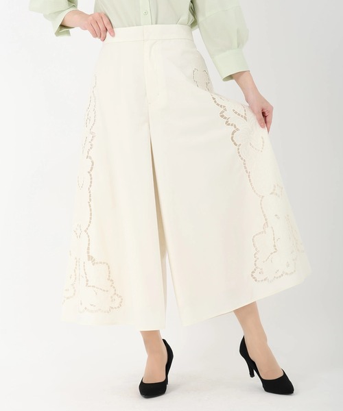 ICHIE*ネオブロード足元に、可憐な遊び心を。日常をドラマティックに歩む、大人のフレアパンツ。凛とした知性が漂うパンツスタイルに裾部分に繊細なエンブロイダリー(刺しゅう)を贅沢に施した、着映え度抜群のフレアパンツが登場しました。「ハンサム」と「フェミニン」が絶妙に溶け合う、STRAWBERRY-FIELDSらしい洗練された一着です。洗濯:洗濯機使用可能(ネット使用)■ Design & Fabric素材には、程よいハリ感と滑らかな表面感が特徴の「ネオブロード」を採用。カジュアルになりすぎないクリーンな表情を持ちながら、シワになりにくく、一日中美しいシルエットをキープします。シルエットは、膝下から緩やかに広がるセミフレア。脚のラインを拾いすぎず、驚くほどのスタイルアップを叶えます。ウエスト周りはすっきりとさせ、インスタイルも美しく決まる設計にこだわりました。■ Stylingトップスはシンプルなリブニットやブラウスを合わせるのがベストバランス。「ネオブロード」の端正な質感は、シャツやジャケットと合わせた着こなしも素敵です。足元は、華奢なサンダルで透け感を際立たせたり、ポインテッドトゥのパンプスでキリッと引き締めたり。日常のお出かけから、少し背筋を伸ばしたいランチシーンまで。穿くだけで心が弾む、主役級のボトムスです。《お気に入り登録》はお得がいっぱい!「商品」のお気に入り登録で、再入荷、ラスト1点、セールなどお得な通知を受け取ることができます。「ブランド」のお気に入り登録で、新商品や再入荷などいち早くブランドの情報を受け取ることができます。是非、この機会にご登録くださいませ。