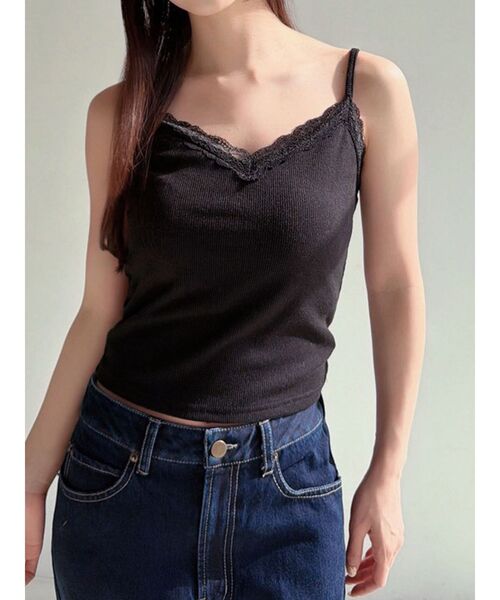ベーシックなレーストリミングのキャミソール ▽デザイン▽ 身頃はテレコリブで柔らかい素材になっており ストレスフリーで着用できます♪ レースデザインと華奢な肩紐がデコルテを綺麗に見せ、 さりげなく女性らしさをプラスします。 しっかりとしたパッドが入っているキャミソールは1枚持っていると重宝します◎ ▽カラー▽ 白・黒・ブラウンの3色展開。 ▽スタイリング▽ 夏の1枚着としても、インナーとしても使い回せる万能アイテム! ジャケットのインナーにも使えるので1枚持っているとシーズンレスに活躍します。 シンプルなデザインでトレンドに左右されず長く使えるのもポイント◎