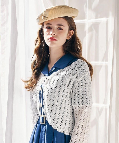 ■デザインポイント クロシェ風の透かし編みがヴィンテージライクなニットボレロ。 端のスカラップにこだわり、シンプルなカーデと差がつく特別感のある仕上がりに。 フロントのリボンは取り外しができるので合わせるインナーや着こなしによってアレンジが楽しめるデザインにいたしました。 ■オススメスタイリング ブラウスやシャツ、ワンピースなど幅広いアイテムに羽織りやすいのがポイント。 程よい透け感があるのでキャミワンピースと合わせたヘルシーな着こなしもトレンドライクに仕上がります。 ====== 裏地:なし 生地感:ふつう 透け感:あり フロントリボン:取り外し可能 ====== ※お洗濯の際にはクリーニングネットを使用してください。 ※洗濯は中性洗剤を使用してください。 ※アイロンは当て布を使用してください。 ▼an another angelus/アンアナザーアンジェラス 『パリの裏通りにひっそりとたたずむ小さな隠れ家。その扉を開けると…』 懐かしくも新しいレトロ感をレディライクに表現し、大人の女性のワードローブを提案。 50年代パリのメゾンからインスパイアされたモードなシルエットやクチュール感のあるディティールにこだわった「Mode of classic」のアイテムも展開中です。 ▼Fint/フィント 50~70年代のクラシカルなヴィンテージデザインに トレンド感をプラスしたレトロ&ガーリースタイルをお届け。 古着屋で一点ものを見つけるような【ときめき】を感じられるブランドです。 ▼商品のお気に入り登録▼気になるアイテムの♡をクリックしてお気に入り登録すると残り1点の通知、完売カラーアイテム再入荷の通知、お得な通知が届きます。 ▼ショップお気に入り登録▼ ショップからの新作商品やお得なイベント情報など、いち早くブランドからの情報を受け取ることができます。
