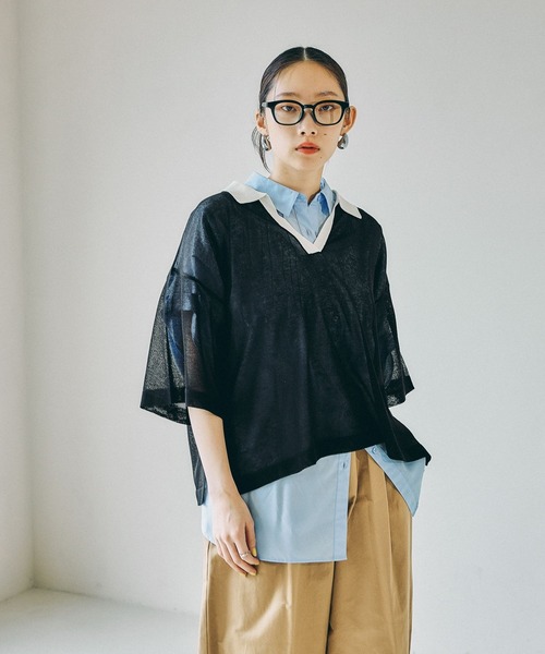 涼しくて軽やかに着用できるシアーニット 【デザイン】 襟が配色になっており、スキッパーデザインでトレンド感のある1枚です。身幅がゆったりしており、すっきりとした着丈なのでラフな印象で着用することができます。 【スタイリング】 ・程良く肌離れしたワイドパンツスタイルと相性抜群です! ・柄ボトムスとも合わせやすく季節感のあるスタイリングが叶います。 --------------------------------------------------- 【気になる商品はお気に入り登録がおすすめ!】 ・在庫残りわずか ・再入荷 ・セールの情報 などの通知を受け取ることができます。 気になる商品は♡をクリックして、 「お気に入り登録」しましょう! 【ショップ・ブランドのお気に入り登録も!】 新商品や再入荷、セール、クーポンの配布など、 いち早くお得な情報を受け取ることができます。 ---------------------------------------------------