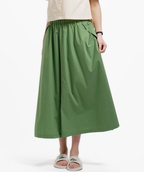 サラっとしたクリーンな表面感で、毎日のコーデに馴染むAラインギャザースカート ・軽やかな着用感を演出するストレッチタイプライター素材 ・ウエストまわりにたっぷりギャザーを寄せた、マキシ丈のフレアシルエット ・両脇にサイドポケットを備え、デイリーユースにも便利 ・ウエストのワニロゴパッチワンポイントに装飾を抑えたミニマルデザイン Regular Fit