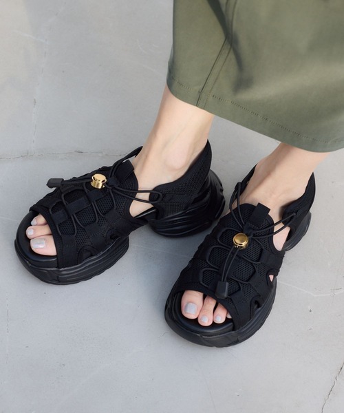 安定感とスタイルアップが叶う、スポーツサンダル 厚底で安定感のあるスニーカーサンダル。 カジュアルコーデにはもちろん、スタイリングにアクセントを加えたいときにも◎ 厚底デザインで脚長効果もあり、トレンド感のある一足です。 お買い物をお得にもっと楽しく!上手な活用方法>>> ▼商品のお気に入り登録▼ 完売カラーの再入荷通知や、ラスト1点の通知、プライスダウンしたセール通知も受け取ることができます。 ▼ブランドのお気に入り登録▼ 新作や再入荷等、いち早くブランドのお得な情報を受け取ることができます。 【ご注意】 ※屋外の光や照明の当たり具合で、実際の商品の色味とカラー別画像の色味に若干の違いが発生する場合がございます。 詳細画像と併せてご確認の上、ご注文いただきますようお願い致します。 ※サンプルにて撮影をしておりますので、実際の商品とは色味・仕様や加工・サイズ等が若干異なる場合がございます。 予めご了承くださいませ。