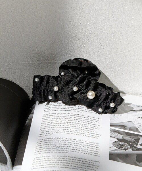 さりげないパールが上品なクリップ・くしゅくしゅデザインがお洋服のアクセントに・まとめるだけで簡単にヘアアレンジが完成◎・オールシーズンお使いいただけるデザイン♪