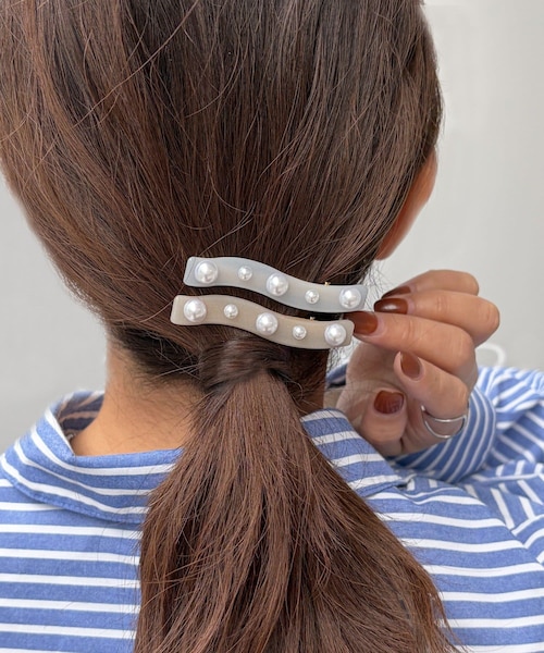 サイズの異なるパールがポイントのクリップセット・コーデのアクセントになるアイテム◎・サイドにつけるだけで簡単にヘアアレンジが完成する万能ヘアアクセサリー・春らしいカラーでコーデのポイントに♪