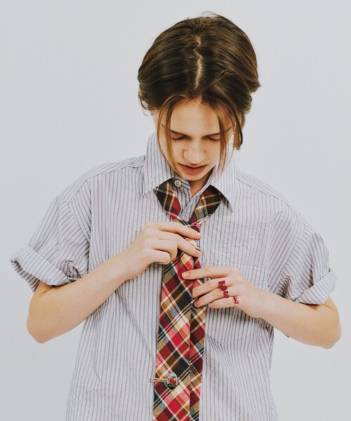 マニッシュだけど、ときめく配色。 ■デザイン 今シーズンのプレッピースタイルを完成させるのに欠かせない、表情豊かなマドラスチェック柄のネクタイ。数あるチェック生地の中から、〈BEAMS BOY(ビームス ボーイ)〉のワードローブに馴染む絶妙な配色の3色を厳選しました。形や長さはオーセンティックなベースを崩さず、女性がバランス良く取り入れられるようナロータイに仕上げているのが最大のポイントです。 ■コーディネート いつものシャツスタイルにプラスするだけで、旬なトラッドスタイルへ格上げしてくれます。ボタンダウンシャツはもちろん、あえてカットソーやTシャツとの遊び心のあるスタイリングもおすすめです。 ※光の当たり具合やパソコンなどの閲覧環境によって、実際の色味と異なって見える場合がございます。予めご了承ください。 ※商品の色味は商品単体で撮影した画像をご参照ください。