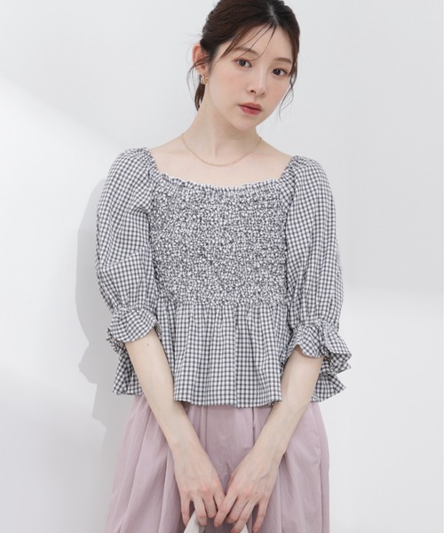 薄くて軽やかなギンガム素材を使用したパフスリーブブラウス。 2種類のシャーリングとフリルディテールが女性らしい立体感と華やかさを演出します。 デコルテをキレイに見せつつ、気になる二の腕をカバーする袖丈もアクセント。 ペプラムシルエットなのでパンツスタイルがおすすめです。 <素材> ギンガム素材を使用しています。 <詳細> 仕様・開閉なし 裏地・あり 透け感・なし / 光沢・なし / 伸縮性・なし 生地の厚さ・薄手 ※モデルの着用画像の場合、光の当たり具合により、実際の色味と異なって見えることがございます。 色味は、商品単体の画像をご参照ください。 <商品のお気に入り登録> お気に入りアイテムの値下げ・再入荷・在庫1点などの通知を受け取ることができる 便利機能ですので気に入ったアイテムはお気に入り登録がおすすめ! <ショップのお気に入り登録> 新商品や再入荷、セール、クーポン配布などお得な情報を受け取ることができます。 ●撮影はサンプル商品で行っている為、仕様とサイズが異なる場合がございます。 ●スタジオ及び屋外で撮影した着用画像は、光の当たり具合で色味が違って見える場合があります。予めご了承ください。