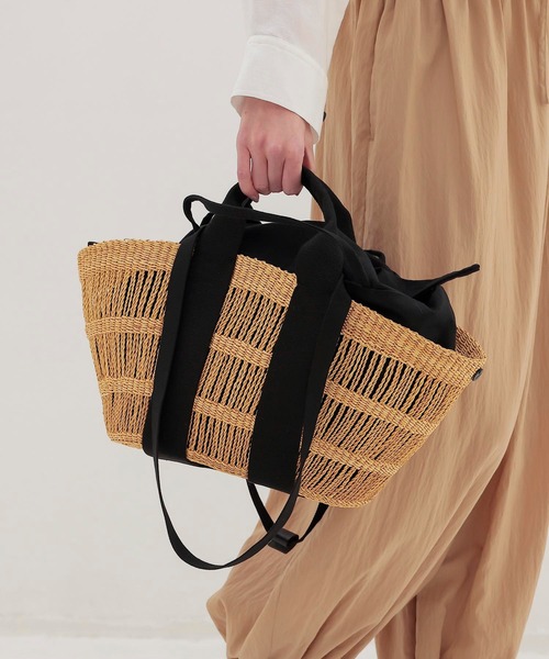 ■DESIGN ガーナの職人によって丁寧に編み上げられたバスケットバッグ「GEORGE NET」。 ハンドル持ちとショルダーの2wayで使える、取り外し可能なインナーポーチ付きのデザイン。 本体には、耐久性に優れたネピアグラスを使用し、2~3日かけて手作業で編み立てられています。 ナチュラルなボディにブラックのハンドルがコントラストを添える配色。 その後、フランスのアトリエにて組み立てと最終仕上げを行い、 インナーポーチはISTAのアトリエで丁寧に縫製されています。 すべてハンドメイドで製作されているため、サイズやフォルム、色味には個体差があります。 一点ごとに異なる表情も、このバッグならではの魅力です。 【MUUN】 フランス人と日本人の女性デザイナーが手掛けるフランス・パリ発、かごバッグブランド「MUUN」ムーニュ。 1点1点ハンドメイドで作られています。 丁寧に編み込まれた温かみのあるかごバッグは「使い勝手が良くてお洒落なバッグ」として注目を浴び、知る人ぞ知る人気ブランドまで成長。 MUUNはアフリカの言葉で“微笑み”を意味します。