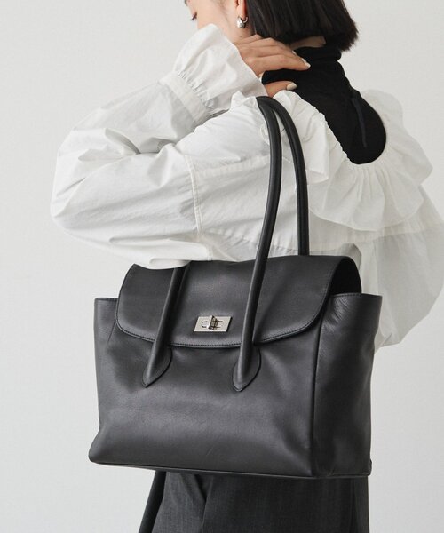 しなやかで上質なソフトレザーを贅沢に使用した、フラップデザインのトートバッグ。 素材選びから仕立て、ディテールに至るまで妥協せず、長く使うことを前提に作られた一品です。 きちんと感が求められる通勤シーンにも対応しながら、レザーのやわらかさが程よく力を抜き、 オン・オフを自然につなぐ大人のためのレザーバッグに仕上げました。 【デザイン】 高級感のあるフラップデザインに、上品な輝きを放つひねり金具を配置。 主張しすぎない金具使いが、アクセサリーを身に着けたときのような華やぎを添えます。 丸手ハンドルはレザーを贅沢に使い、手に取った瞬間に伝わる安定感と持ちやすさを実現。 シンプルでありながら、細部まで丁寧に仕上げられた佇まいが、大人の装いに自然と馴染みます。 【ポイント】 ・オールレザー仕様で、使い込むほどに味わいが増す経年変化 ・13インチPCが収納でき、通勤バッグとして十分な実用性 ・内装ファスナーポケットは長財布も収まるサイズ感 ・スナップボタン+フラップの二重構造で安心感のある使い心地 ・取り外し可能な底板付きで、シルエットを美しく保つことも、あえて柔らかさを出すことも可能 ・ソフトレザーならではの落ち感で、きれいめながら堅くなりすぎない印象に 【仕様】 内装:オープンポケット×1、ファスナーポケット×1 外装:マグネットポケット×1 開口部:フラップ(ひねり金具)、スナップボタン 金具カラー:シルバー 【カラー展開】 ・ブラック(Black)…装いを選ばず、どんなスタイルにも上品に馴染むベーシックカラー。レザーの質感が引き立ち、シンプルながら洗練された印象に。 【注意事項】 ・本革を使用した製品のためシワ感のある部分や、キズがある部分と、生活によって生まれたその個体ならではの個性がございます。 ・革個性や革の表情はお選びいただく事はできません。予め天然素材であることをご了承の上お買い求め頂くようお願いいたします。 ・また水濡れや摩擦により色落ちや洋服への色移りが発生する可能性がございます。 Made in Japan #CE-1678