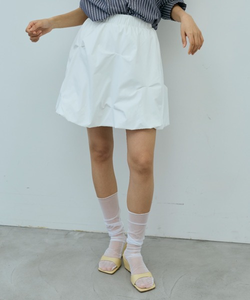 【DRWCYS S/S collection】 〈 Design Point 〉 立体的なシルエットが魅力のバルーンスカート。 タックを施すことで、ふんわりとした立体感のあるフォルムに仕上げた一枚。 シンプルなトップスと合わせるだけで、コーディネートに程よい存在感をプラスしてくれます。 ウエストはゴム仕様で、リラックス感のある快適な穿き心地。 丸みのあるシルエットが気になるラインをさりげなくカバーし、バランス良く着ていただけます。 カジュアルからきれいめまで幅広いスタイリングに合わせやすく、 シーズンレスで活躍するアイテムです。 〈 Size 〉 FREE サイズ 〈 Detail 〉 ポリエステル95%, ポリウレタン5% 透け感:なし 伸縮性:なし 裏地:あり ケア方法:ご自宅でお洗濯可能です。単独洗い、手洗いを推奨しております。 ※濃色品は多少色落ちする可能性がありますのでお洗濯のさいは、淡色のものとは別にお洗い下さい。 ※濃色品は漂白剤入り、または漂白剤成分のある洗剤の使用はお控えください。 ※照明の関係により、実際よりも色味が違って見える場合がございます。 ※商品に付いている商品表示とアテンションタグをご確認の上、着用・お取り扱い下さい。 〈 公式Instagram 〉 @drwcys_official 新作アイテムの情報やおすすめ商品を随時UPしております。 是非チェックしてみて下さい。 ---------------------------------------------------- 〈 お買い物をよりお楽しみいただく為に 〉 ・商品のお気に入り登録 ♡をクリックして気になるアイテムをお気に入りに登録していただくと 完売カラーの再入荷や、ラスト1点の通知、セールの際の通知を受ける事ができます。 ブランドのお気に入り登録もご一緒にお願い致します。
