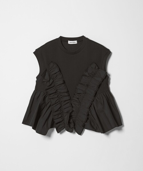 フリル使いが着映えするノースリーブトップス ■デザイン 裾のフリルディテールがポイントの1枚でスタイリングが決まるカットソーと布帛のコンビトップス。 華やかさがありつつも、きゅっと詰まったネックがクリーンな印象。 ブラウス感覚で着用いただける着映えする一枚です。 ■素材 身頃はカジュアルなテレコ素材、フリルはハリのあるブロード生地を使用。 どちらも程よく抜け感があるのでオンオフ着用いただけます。 ■コーディネート デニム合わせでカジュアルにも、スラックスでモードに着こなしても◎ #春服,#春物,#夏服,#夏物,#26SS,#カットソー,#ノースリーブ ============================ 裏地:なし 透け感:ホワイトややあり 伸縮:ややあり 光沢感:なし ケア方法:手洗い可 ============================ < EMMEL REFINES(エメル リファインズ) > Pleasure ~今を楽しみ、変化を楽しむ~ EMMEL REFINESは変化していく時代やトレンドを恐れなく前向きに楽しみ、 今に満足せず常に自分を更新していきたい、 自分らしさを表現したい女性に向けたブランドです。 女性の共感を大切に、時代にフィットした新しいスタイルを提案します。 【注意事項】 ※画像の商品はサンプルです。実際の商品と色味、仕様、加工、サイズ、素材等が若干異なる場合がございます。 ※工場の生産の都合上、納期が変更になる場合がございます。発送日の前後についてはあらかじめご了承ください。 ※入荷状況により、お客様への発送が店頭販売より遅れる場合もございます。 ※商品に「取り扱い上の注意書き」、「洗濯表示」がございます場合は、使用前に必ずご確認ください。 ※商品画像は、光の当たり具合やパソコンなどの閲覧環境により、実際の色味と異なって見える場合がございます。あらかじめご了承ください。 ※商品の色味の目安は、商品単体の画像をご参照ください。 お問い合わせの際は、ユナイテッドアローズ カスタマーサービスデスクまで下記の品名/品番をお申し付けください。 品名:EM テレコ フリルGA PO 品番:66171000009