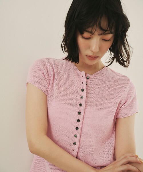 カラーがポイントのショートスリーブニット ■デザイン コンパクトなサイズ感とボタンデザインがかわいらしいショートスリーブニット。 ゆるっと編むことでコンパクトなサイズ感でも着心地◎ ■素材 さらっとしたタッチの糸をゆるく編んだニットで肌触りよく夏でも着やすい素材です。 合わせやすいナチュラルに加えて、EMMEL REFINESオリジナルのレッドとピンクがポイント。 ■コーディネート デニム合わせでフレンチカジュアルなスタイルがおすすめ。 夏らしいイージーなボトムやスカートとの相性も◎です。 #春服,#春物,#夏服,#夏物,#26SS,#ニット,#サマーニット,#羽織,#カーデ ============================ 裏地:なし 透け感:あり 光沢感:なし ケア方法:手洗い可 ============================ < EMMEL REFINES(エメル リファインズ) > Pleasure ~今を楽しみ、変化を楽しむ~ EMMEL REFINESは変化していく時代やトレンドを恐れなく前向きに楽しみ、 今に満足せず常に自分を更新していきたい、 自分らしさを表現したい女性に向けたブランドです。 女性の共感を大切に、時代にフィットした新しいスタイルを提案します。 【注意事項】 ※画像の商品はサンプルです。実際の商品と色味、仕様、加工、サイズ、素材等が若干異なる場合がございます。 ※工場の生産の都合上、納期が変更になる場合がございます。発送日の前後についてはあらかじめご了承ください。 ※入荷状況により、お客様への発送が店頭販売より遅れる場合もございます。 ※商品に「取り扱い上の注意書き」、「洗濯表示」がございます場合は、使用前に必ずご確認ください。 ※商品画像は、光の当たり具合やパソコンなどの閲覧環境により、実際の色味と異なって見える場合がございます。あらかじめご了承ください。 ※商品の色味の目安は、商品単体の画像をご参照ください。 お問い合わせの際は、ユナイテッドアローズ カスタマーサービスデスクまで下記の品名/品番をお申し付けください。 品名:EM ソフトニット BTN S/SL 品番:66181000002