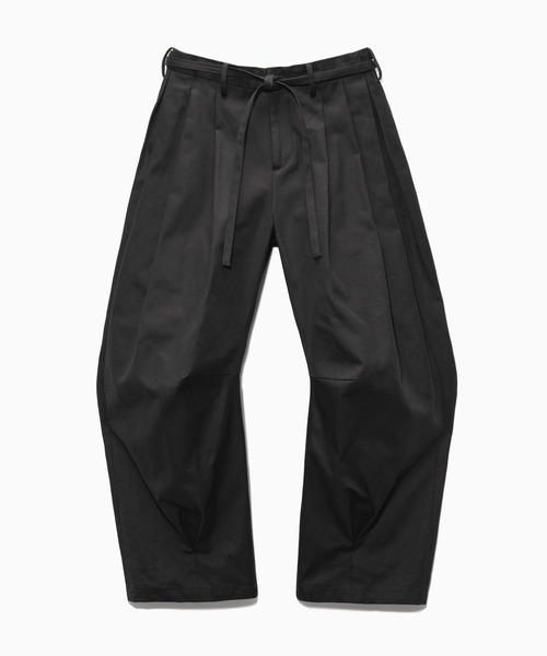 NARRIL REBUILD JAPONISM ― JUDO-style ― 【武道の精神を、現代の日常に再構築する】 日本が誇る武道「柔道」。その象徴である柔道着は、明治後期に洋装の合理性を取り入れ、「頑丈でいて、しなやかに動ける」究極の機能美へと進化を遂げました。 NARRILは、この日本独自の衣の文脈を現代に呼び覚まします。 質実剛健な力強さと、無駄を削ぎ落とした合理的な美しさ。そのアイデンティティを解体し、現代の日常に馴染む洗練された一着へと昇華(リビルド)させました。 【仕立て・意匠】 重力が描く、立体美。生地と設計が織りなす構造的トラウザー 柔道着の構造を「折り紙」の如く再構築。和の様式美とモダンな気品が溶け合い、圧倒的な存在感を放つ立体造形パンツが誕生しました。 構造的なフォルム: ウエストや裾に配した大胆なタック、そして膝のダーツ。これらは単なる装飾(デザイン)ではなく、空気を孕んだような「バコっ」とした力強い膨らみを生むための「必然的な設計」。歩くたびに3Dのような躍動感あるシルエットを維持します。 ウエストの意匠: 柔道着の帯や身頃の重なりを活かしたフロント結びの仕様。ウエストを一周する独創的なラインが、トップスをインした際の唯一無二のアクセントになります。 変幻自在なギミック: 紐は内側へ収納可能。ベルトを装着できる仕様も備え、和の空気感と現代の機能性を自由に切り替えられます。 【素材:40/3 プレミアハイカウントツイル】 縦横共に「三子撚り(3本の糸を1本に撚り合わせる)」の糸を使用した、極めて堅牢で上質なハイカウント・ウェポン素材。 洗練された表面感: 通常の単糸に比べ毛羽立ちが少なく、筋立ちを抑えた美しい表面が特徴。 逆綾(さかあや)のこだわり: あえて一般的なツイルとは逆方向の綾目にする「逆綾」を採用。こだわり抜いた質感と独自の光沢が、立体的なシルエットをさらに際立たせます。 【KAIHARA DENIM】 世界が認める、日本デニムの最高峰 広島県を拠点に、糸染めから織り上げまでを一貫して行う世界屈指のデニムメーカー「カイハラ」。その徹底した品質管理から生まれる生地は、いわば“デニムの完成形”。世界中のメゾンから信頼される、揺るぎない安定感と美しさを誇ります。 経糸(たていと)に節のあるナチュラルなスラブ糸を用いた、豊かな表情を持つ国産デニム。 独自の染色技術「D-SPEC ECO」: 環境に配慮した独自のロープ染色により、深いインディゴの色合いと、糸の芯を白く残す「芯白(しんじろ)」を極限まで追求。 鮮やかな経年変化: 穿き込むほどに、濃淡のコントラストが効いたメリハリのある色落ちと、自然なアタリが生まれます。自分だけの一着へと育てる愉しみをご堪能ください。 SET ITEM セットアップ対応アウターはコチラを検索→【658887】 ※サンプルにて撮影をしておりますので、実際の商品とは仕様や加工・サイズ等が若干異なる場合がございます。 ※屋外の光や照明の当たり具合で、実物と色味が異なって見える場合がございます。詳細画像の色味をご確認ください。 なお、商品の色や質感を出来るだけ忠実に再現するよう心掛けておりますが、パソコンなどの環境により、実物と若干異なる場合がございます。 ※写真を許可無くコピー・転用することは固くお断りします。