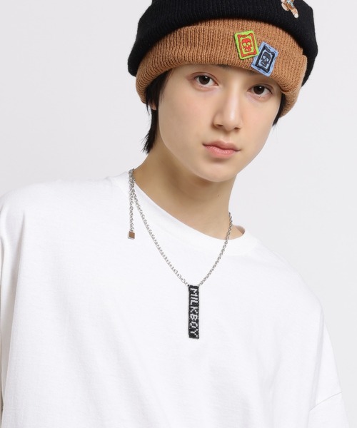 MILKBOY 2026 SPRING ・「MILKBOY」「FUCK」「LOVE」のメッセージをビーズをあしらったペンダントネックレス ・小さなビーズを丁寧に並べて作られた、手作り感のあるチャームが魅力 ・華奢なシルバーカラーのチェーンとの組み合わせで、上品さとエッジィさを兼ね備えたデザイン ~ Colors ~ A,MILKBOY B,FUCK C,LOVE ~ Material ~ ガラスビーズ , 真鍮 , 錫合金