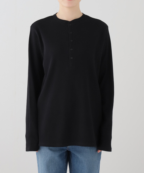 【2026SS】 journal standard luxe コットン100%のムラ糸をランダムなリブ目で編む事で、表情感がある仕上がりのテレコ素材です。 身体のラインを拾いすぎない、程よいゆとりのヘンリーネックプルオーバー。 一枚でメインのトップスとしても、インナーとしても着回しのきくアイテムです。 ブラック・ホワイト 2色展開。 FREEサイズ ※取り扱いについては、商品についている品質表示でご確認ください。 ※照明の関係により、実際よりも色味が違って見える場合があります。 またパソコン・スマートフォンなどの環境により、若干製品と画像のカラーが異なる場合もございます。 ※商品の色味は、商品アップ画像をご参照ください。 モデルサイズ:身長:163cm 着用サイズ:フリー 本体:手洗い可能