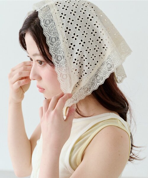 シンプルスタイルを格上げするアクセントスカーフ ■デザイン 繊細なフラワーレースが美しく映える、上品なレーススカーフ。 軽やかでやわらかな素材感が、やさしく頭を包み込みます。 通気性のあるカットワークデザインで、季節を問わず快適なつけ心地。 首元で結んだり、ヘアアクセサリーとしてアレンジしたりと、使い方も自在です。 【お取り扱いの注意】 ※着用時、洗濯時は必ず取り扱い表示・タグをご確認の上、お取り扱いください。 ※サイズ採寸は各モールによって異なり、多少の誤差が生じる可能性がありますのでご了承ください。 ※撮影画像はサンプル品を使用しているため、実際の商品とカラー、仕様、加工、サイズが若干異なる場合がございます。 使用しているパソコンのモニター設定や、携帯電話のメーカー・機種により実際のカラーと異なって見える場合がございます。予めご了承ください。 ▼商品のお気に入り登録 ハートマークをクリックし、お好きなカラーを選んでお気に入りに登録 完売カラーの再入荷通知や、ラスト1点の通知、セールの通知も受け取ることができます。 ▼ブランドのお気に入り登録 新商品や再入荷等、いち早くブランドのお得な情報を受け取ることができます。 <返品・キャンセルについて> ・着用・洗濯後の返品・ご交換は致しかねます。 ・商品到着後、着用前に商品を確認して頂きますようお願い致します。