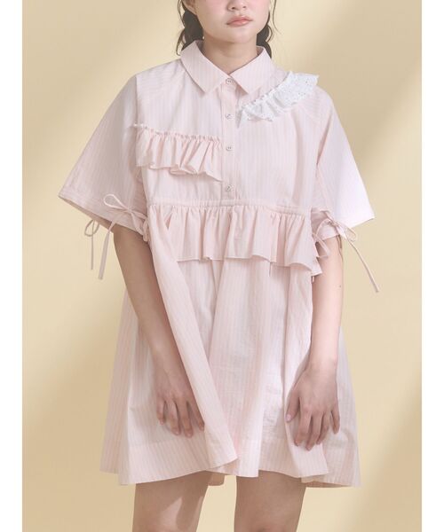 ■デザイン ストライプ柄にフリルをたっぷりあしらった、デコラティブなシャツワンピース。 甘さのあるディテールと爽やかなストライプが合わさり、 カジュアルな可愛らしさの中に少しマリンムードを感じるデザインに仕上げました。 ■サイズ感 ウエストはドロスト仕様のため、きゅっと絞ることでシルエットを自分好みに調整可能。 ゆとりのある着心地ながら、メリハリのあるバランスで着用いただけます。 ■スタイリング 1枚で主役になるアイテムはもちろん、ストライプに合わせてマリンハットをプラスしたスタイリングもおすすめ。 甘さとカジュアルさをミックスした着こなしを楽しめます。 . . . . . . . . . . . . . . . . . . . . . . . . . 【商品情報】 透け感:なし 裏地:なし 伸縮性:なし 光沢感:なし 生地の厚さ:普通 . . . . . . . . . . . . . . . . . . . . . . . . . 【商品のお気に入り登録】 ♡をクリック! 完売カラーの再入荷や、ラスト1点の通知、 セールの際の通知も受け取ることができます。 【ブランドのお気に入り登録】 新商品や再入荷など、 merryの情報をいち早くお知らせします! ぜひご登録ください♡
