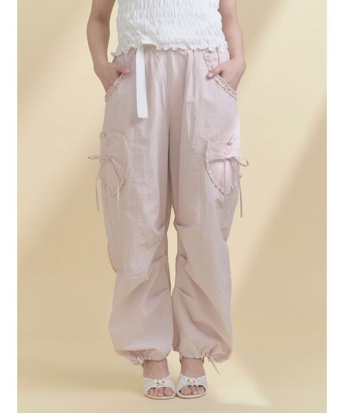 ■デザイン 淡く甘さをプラスしたミリタリーテイストのボトムス。 ポケットは上からドットチュールを重ねた、ときめきを感じるディテールもポイントです。 merryオリジナルの迷彩花柄は、淡くやさしい配色で仕上げ、迷彩を思わせすぎないバランスにこだわりました。 カジュアルになりすぎず、スタイリングに取り入れやすいデザインです。 ■サイズ感 ウエストはゴム仕様で楽ちんなはき心地ながら、 フロントのベルトでフィット感の調整が可能。 裾はドロスト仕様になっており、丈感を調整できるため、 低身長の方にも安心して着用いただけます。 ■スタイリング Tシャツやブラウス、甘めトップスまで幅広く合わせやすく、 カジュアルからガーリーまでテイストミックスを楽しめるアイテム。 シーズンレスでさまざまなスタイリングに活躍します。 . . . . . . . . . . . . . . . . . . . . . . . . . 【商品情報】 透け感:なし 裏地:なし 伸縮性:なし 光沢感:なし 生地の厚さ:普通 . . . . . . . . . . . . . . . . . . . . . . . . . 【商品のお気に入り登録】 ♡をクリック! 完売カラーの再入荷や、ラスト1点の通知、 セールの際の通知も受け取ることができます。 【ブランドのお気に入り登録】 新商品や再入荷など、 merryの情報をいち早くお知らせします! ぜひご登録ください♡
