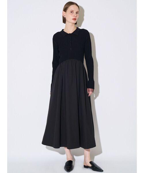 RIB DOCKING FF OP ミニマルなポロカラーのニットドッキングワンピース。 スカート部分にハリのあるシャツ地をドッキングし、メリハリをつけた女性らしいフィット&フレアシルエット。 ウエスト切替にカーブをつけてスタイルアップするバランスに。 ニット部分はリブ組織でリラックスフィットし、体のラインを拾いすぎないサイズ感が◎。 袖口はチュールをレイヤードし、手元にさりげないアクセントを効かせたデザインもデザインポイント。 ・・・・・・・・・・・・・・・・・・ 透け感:なし 裏地:なし 伸縮性:ニット部分のみあり 生地の厚さ:普通 ・・・・・・・・・・・・・・・・・・ 【 お買いものにおすすめの便利機能! 】 ▽商品のお気に入り登録 完売カラーの再入荷時や、ラスト1点の時、セール開始時にお知らせします。 ▽ブランドのお気に入り登録 新商品や再入荷、セール情報など、いち早くブランドのお得な情報を受け取ることができます。 ぜひご活用ください。 ※実際にお届けする商品と仕様やサイズが異なる場合がございます。 また生産の都合上、お届け時期が前後する場合がございます。