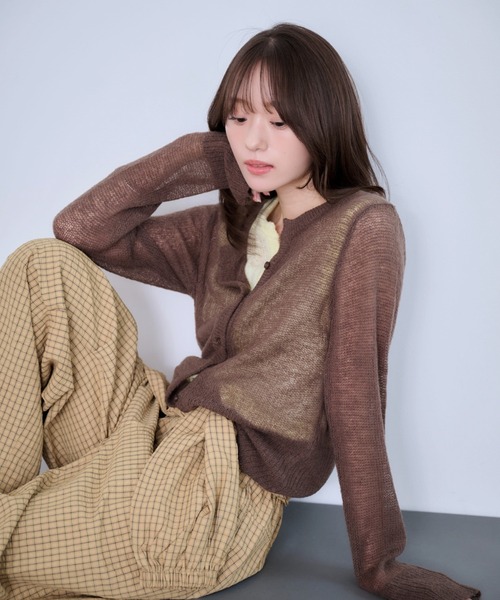 ■ Point. 透け感のあるモヘアニットカーディガンと、ベストを組み合わせたレイヤードセット。ふんわりとした軽やかな素材感と、奥行きのあるスタイリングが楽しめるアイテムです。 カーディガンは透かし編みデザインで、やわらかく軽やかな印象に。ほんのり透けるモヘア素材がコーディネートに抜け感をプラスし、季節の変わり目にも取り入れやすい一枚です。 セットのベストを合わせることで、自然なレイヤードスタイルが完成。カラーのコントラストがさりげないアクセントになり、シンプルながらもこなれた雰囲気を演出します。 それぞれ単体でも着用できるため、着回し力も抜群。デニムやスラックス、スカートなど幅広いボトムと相性よくスタイリングが楽しめます。 ……………………………………………………… 【ZOZOTOWNでお買い物を上手にお楽しみいただく2つのPOINT】 ▼購入ボタン横の(ハートマーク)をクリック! 完売カラーの再入荷通知や、ラスト1点の通知、セールの通知も受け取ることができます。 (クリックで商品のお気に入り登録) ▼ショップのトップページにある♡(ハートマーク)「お気に入りショップに追加」をクリック! 新商品や再入荷等、いち早くブランドのお得な情報を受け取ることができます。 (ブランドのお気に入り登録) ※他のキャンペーンにより、期間中に価格が変動する場合があります。 ※セールは予告なく終了させていただく場合もあります。 ※モデル着用商品の画像はサンプルのため、実際の製品とは仕様や加工、サイズ等が若干異なる場合がございます。 ※商品の色味は、撮影場所や光のあたり具合・お客様のお使いのPCのモニター環境などにより色味が違って見える場合がございます。予めご了承の上ご注文下さい。 ……………………………………………………… カーディガン トップス モヘア レイヤード レイヤー セット 2点セット シアー シースルー 配色 ブラウン イエロー ネイビー ピンク 春 夏