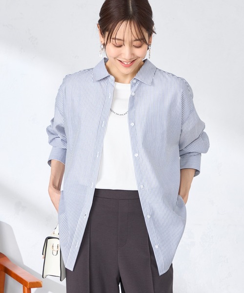 大人の抜け感を演出するストライプシャツ 【機能/素材】 肌触りのよいオックスフォード調の布帛。 クリーンなストライプ柄で春を感じさせる素材感です。 【デザイン】 袖も身幅もたっぷりとしたリラックスシルエット。 襟元はレギュラーカラー、裾は長めでお尻まわりがしっかり隠れるラウンドテール。 シンプルながら旬な雰囲気に決まる一着です。 【お勧めスタイリング】 一枚着はもちろん、羽織りとしても使える優秀アイテム。 春先から初夏まで、カジュアル・きれいめ問わず様々なコーディネートに活躍します。 【GALLORIA /ギャロ―リア】 ベーシックだけじゃ物足りない、ほどよくトレンドを取り入れ シーンレスにきちんと見える。 そんな願いを叶えてくれる、いまの空気感をまとった大人のデイリー服「GALLORIA」 買いやすいプライスで、バリエーション豊富に揃う ライフスタイルに寄り添うコレクションを展開します。 ◆Instagram:@galloria.sns 公式Instagramでは最新情報を定期的に更新中!フォローしてお得な情報をゲット! ■商品のお気に入り登録のおすすめ■ 完売カラーの再入荷通知、ラスト1点、お得なクーポンやお値下をお知らせします。 ■ブランドのお気に入り登録のおすすめ■ 新商品や再入荷のお知らせ等、ブランドのお得なクーポンやお値下をお知らせします。