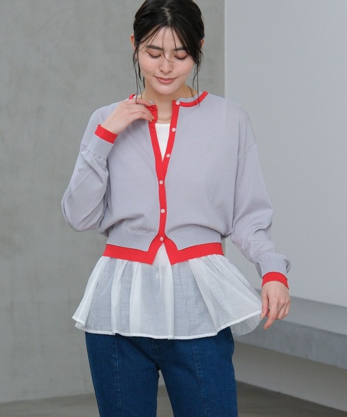 レイヤード風のデザインが特徴のハイゲージカーディガン。 コンパクトなシルエットなので1枚でも着やすいアイテムです。 羽織としてはもちろん、ボタンを留めたプルオーバーの着こなしもおすすめ。 【素材】 14ゲージ(ハイゲージ)の薄手の素材感。 滑らかな質感で肌触りも良い1枚です。 [マシンウォッシャブル] ご家庭の洗濯機でお洗いいただけます [UVケア] 生地を透過する紫外線を遮蔽する機能があります 【スタイリング】 ジャストの着丈なので合わせるボトムを選ばずスタイリングできます。 ボリュームのあるボトムと合わせればメリハリのあるスタイリングが完成します。