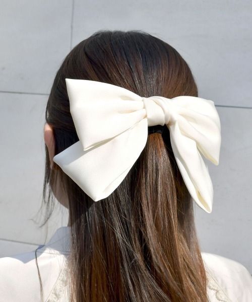 ■デザインポイント とびきりキュートで存在感のあるビッグリボンバレッタ♡ 程よく光沢感のあるサテン生地が品の良い印象に◎ お好みのコーディネートに合わせていただけるよう、カラー展開も豊富にご用意いたしました。 ■オススメスタイリング ガーリーなコーディネートでとことん甘くまとめたり、カジュアルなコーデのワンポイントとして甘さをプラスするのもオススメです。 ハーフアップやポニーテールなどのいつものアレンジにプラスするだけで、特別感たっぷりの仕上がりになります♪ ▼Fint/フィント 50~70年代のクラシカルなヴィンテージデザインにトレンド感をプラスしたレトロ&ガーリースタイルをお届け。 古着屋で一点ものを見つけるような【ときめき】を感じられるブランドです。 ▼商品のお気に入り登録▼気になるアイテムの♡をクリックしてお気に入り登録すると残り1点の通知、完売カラーアイテム再入荷の通知、お得な通知が届きます。 ▼ショップお気に入り登録▼ ショップからの新作商品やお得なイベント情報など、いち早くブランドからの情報を受け取ることができます。