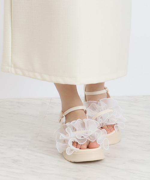 【コーデを華やかに飾るフリルサンダル】 フリルには軽やかなシアー素材を使用し、足元に涼しげなアクセントをプラス。 ナチュラルに身長アップする厚底デザインは、履くだけでスタイルアップ♪ クッション性のある柔らかい履き心地で足への負担を軽減。 長時間の着用でも疲れにくいのもポイントです。 スカートにもデニムにも合わせやすく、デイリー使いしやすいデザイン。 春・夏のイベントから旅行にも。 カジュアルコーデからフェミニンスタイルまで幅広くマッチします♥ (サイズ展開) SMALL:22.0-22.5㎝ MEDIUM:23.0-23.5㎝ LARGE:24.0-24.5 【ASTORIA ODIER(アストリア オディール)】 「女性の”はたらく”が、もっと楽しくなる服」 なりたい自分を叶えるために毎日を大切にしている女性の気持ちに寄り添い、はたらく日も休みの日も、手に入れられる憧れをお客さまと一緒につくっていく。 自分のキレイがみつかるフェミニンカジュアルスタイルを提案します。 ◆《お気に入り登録》でお得な情報を◆ ・「商品のお気に入り登録」 再入荷、ラスト1点、セール情報などの通知も受け取ることができます。 ・「ブランドのお気に入り登録」 新商品や再入荷など、ブランドのお得な情報を受け取ることができます。