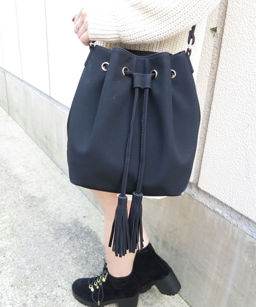 who's who Chico(フーズフーチコ)スエード調のマットな質感が秋らしさを感じさせてくれる1点です。タッセル×巾着とトレンドキーワードの詰まったデザインとなっており、洗練されたルックスが、大人レディスタイルに最適なショルダーバックです。マチ付きなので、見た目以上に収納が出来ます。内ポケット付で使い勝手もオススメ。普段使いはもちろん、通勤にもお使い頂ける優れものアイテムです。ころんとしたフォルムアクセサリー感覚で取り入れられるのも嬉しいポイント。