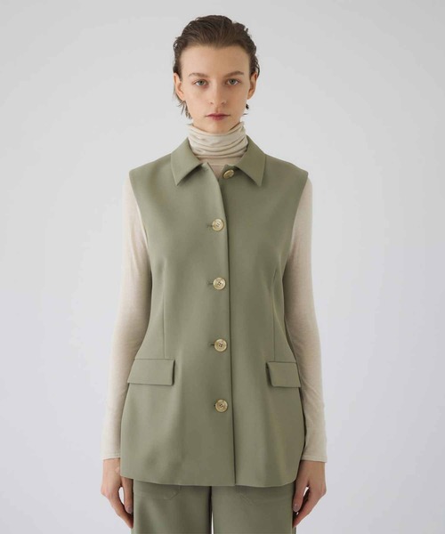 〈デザイン〉 ・シャープな襟付きデザインが、羽織るだけで着こなしをマニッシュな印象に引き締めるベスト ・縦のラインを美しく見せるIラインシルエットと長めの着丈が、スタイルアップ効果を発揮 ・毛羽が少なくクリアな表面感と程よいハリが特徴の二重織カルゼ生地を使用 ・シワになりにくく、さらりとした肌触りでロングシーズン快適にご着用可 ・同じ生地で製作したClassy painter PT(460JSN31-0151)と合わせればオンオフ問わず活躍するセットアップスタイルが完成 ・Back tuck short JK(460JSN30-0131)と合わせて襟を覗かせた着こなしもおすすめ 〈素材〉 透け感 なし 裏地 なし 伸縮性 なし 洗濯:手洗い可 メーカー品番:460JSN30-0141 RIM.ARK 凛とした強さ、知性、品格。揺るぎない「芯」。 RIM.ARKが目指すのは、自立した女性の美しさを引き立てる服。 無駄を削ぎ落としたシンプルでミニマルなデザイン。 ものづくりの息吹が感じられる素材、立体的なシルエット。 トレンドにとらわれない、タイムレスで本質的なアイテムを通して纏う人の内面的な豊かさを表現している。 ---------------------------------------------------- 【お買い物をよりお楽しみいただく為に】 ▼商品のお気に入り登録をおすすめします! ♡をクリックしてください。 完売カラーの再入荷や、ラスト1点の通知、セールの際の通知を受ける事ができます。 ブランドのお気に入り登録もご一緒にお願い致します。 ※店舗と在庫を共有しておりますので、受注確認メールが届いてもご注文のタイミングによりましては売り切れになる可能性がございますので、予めご了承ください。 ※商品の色味につきまして、撮影環境、お客様のお使いのPCのモニター環境により実際のカラーと画像の色味が違って見える場合が御座います。予めご了承の上、ご注文下さい。