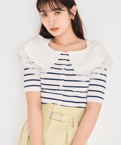 -*-*-*-2026 Spring&Summer Item-*-*-*- レースディテールが映えるビッグカラーニット。 上品な華やかさを添える一枚。 ■ design レーストリミングを施し 気映えする一枚です。 ほどよく開いたネックラインにレースをあしらい、 フェミニンな印象に仕上げました。 身頃はすっきりとしたリブ編みで、 上半身をきれいに見せてくれるのもポイントです。 ■ styling point タイトスカートやマーメイドスカートと合わせた、 上品なスタイリングがおすすめ。 きれいめなコーディネートに取り入れやすく、 デイリーからお出かけまで幅広く活躍します。 ※ご覧のモニター環境や光の照射・角度により、 画像の色味と多少異なる場合がございます。 ご了承ください。 \《お気に入り登録》でお得な情報をGET/ 『♡』をクリックすると… ・《商品のお気に入り登録》で再入荷通知や ラスト1点の通知、セールやクーポンの通知も 受け取ることができます。 ・《ブランドのお気に入り登録》で新作商品や再入荷など、 お得な情報を受け取ることができます。