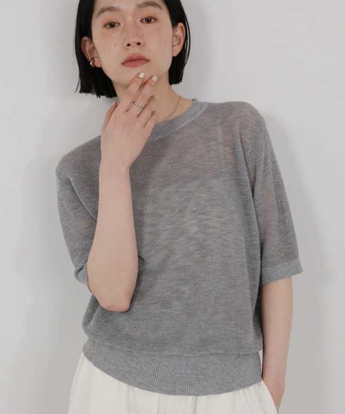 -point- & -styling- さらっとした肌触りが心地よい、 リブ編みのシアークルーネックニットプルオーバー。 程よく体に沿うシルエットと、短すぎない着丈で バランス良く着られる大人のためのカジュアルトップス。 表情豊かな編み地ならではの程よいシアー感があり、 軽やかな肌触りのため暑い季節でも快適に着用可能。 自宅で手洗いケア可能です。 スカートにもパンツにも合わせやすく、 デニムやリネンなどドライタッチなボトムと好相性。 ジャケットインにも最適です。 ハーフスリーブシンプルシアーニット ---------------------------- 素材 レーヨン85%・ポリエステル15% ---------------------------- 伸縮性 ★★★☆☆ 裏地 なし ---------------------------- ※モニター・環境等により実際の商品と多少色味が異なって表示される場合がございます。 予めご了承をお願いいたします。 ======================= ■袋梱包の為、染料による特有の匂いが抜けきれず、匂いがする場合がございますが不良品にはあたりません。 上記注意点での返品、交換はお断りします。ご了承の上お買い求めくださいませ。 ■本製品は生産過程におきまして色味、サイズ感等若干の誤差が出る場合がございます。予めご了承くださいませ。 ======================= 【お買いものをお楽しみいただく為に!】 ▼商品のお気に入り登録 完売カラーの再入荷通知や、ラスト1点の通知、セールの通知も受け取ることができます。 ▼ブランドのお気に入り登録 新商品や再入荷など、いち早くブランドのお得な情報を受け取ることができます!