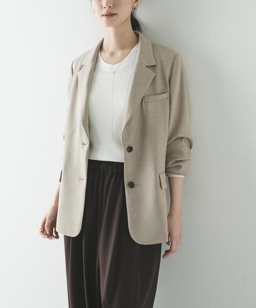 洗練された大人の佇まいを叶えるリネンライクなテーラードジャケット。 天然素材のようなナチュラルな表情がありつつ、上品な光沢感が魅力です。 さらりとした心地よい肌当たりで、裏地も付いているため、春先から秋口までロングシーズン活躍します。 ご自宅での手洗いが可能なため、デイリー使いにおすすめ。 体に程よく沿うシルエットが、すっきりと見せてくれ、ストレッチ性に優れています。 スラックスを合わせたオフィススタイルはもちろん、デニムでカジュアルダウンするのもおすすめです。オンオフで着用可能な一着です。 POINT ・オンオフ問わず活躍する上品なシルエット ・動きやすく快適なストレッチ性とイージーケアが叶う素材 ・好みのフィット感で選べる2サイズ展開 【2026 Spring/Summer】【26SS】 ※この商品のポケットにしつけ糸がついている場合は、外してご使用ください。 総重量 : 約460g ※商品画像は、光の当たり具合やパソコンなどの閲覧環境により、実際の色味と異なって見える場合がございます。予めご了承ください。 ※商品の色味の目安は、商品単体の画像をご参照ください。 ▼お気に入り登録のおすすめ▼ お気に入り登録商品は、マイページにて現在の価格情報や在庫状況の確認が可能です。 お買い物リストの管理に是非ご利用ください。 素材感 透け感 : なし 伸縮性 : ややあり 裏地 : あり 光沢 : なし ポケット : なし 3836